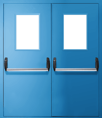 Неподвижная створка полутора- и двупольных конструкций, как правило, оснащается петлями и двумя упорами (верхний, нижний), что позволяет в экстренных ситуациях увеличить размеры проёма и упростить эвакуацию людей.